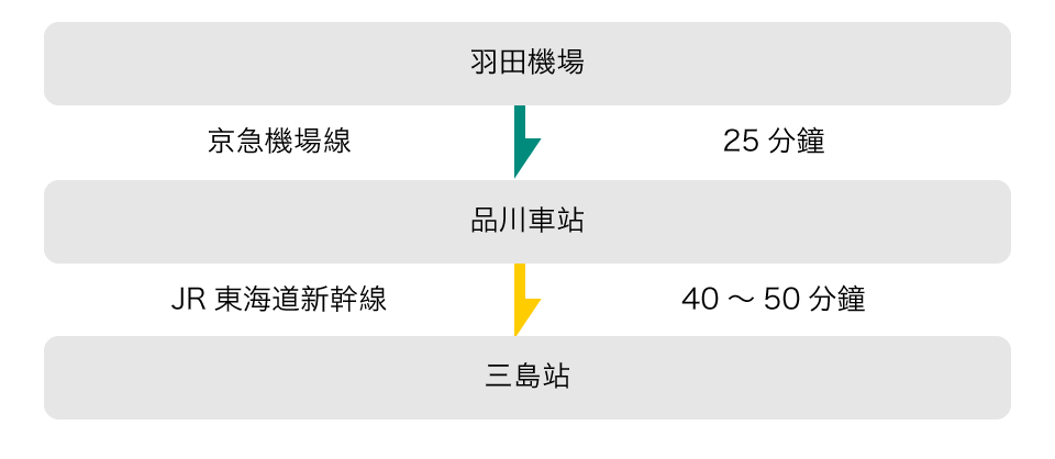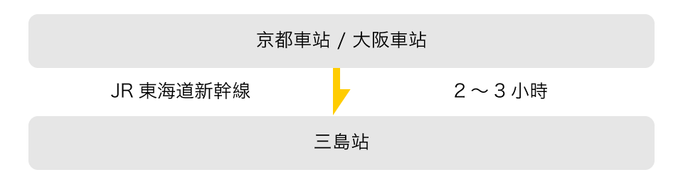 于JR三岛站搭乘伊豆箱根铁道线5分钟抵达三岛田町站后,步行5分钟