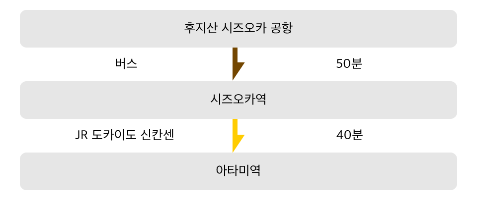 JR 아타미역에서 버스 또는 택시로 10분