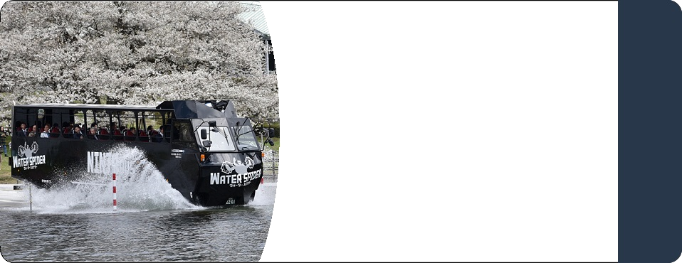 수륙양용버스의 이름 WATER SPIDER은 인술(忍術)의 '물 거미(水蜘蛛) "에서 유래해서 지금까지없는 독특하고 흥미로운 체험을 제공합니다.