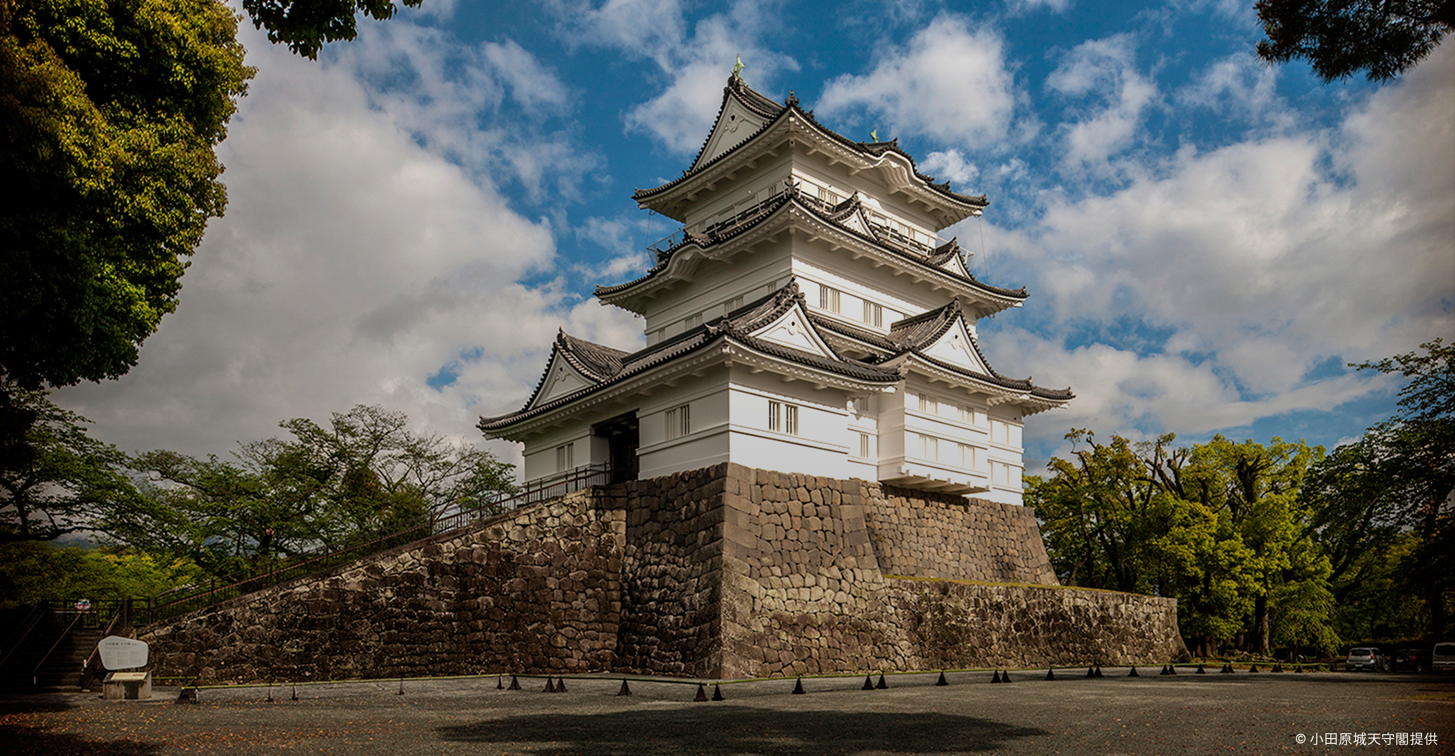 오다와라성은 전국 시대에 간토 지역을 지배한 호조씨의 본거지로 3대 당주 호조 우지야스 시대에는 난공불락, 무적의 성으로 칭송받았으며 유력 무장인 다케다 신겐이나 우에스기 겐신의 공격에도 무너지지 않았습니다. 그러나 그 후에 천하 통일을 도모한 도요토미 히데요시의 공격을 받아 3개월의 농성전 끝에 무혈개성(無血開城)하여 전국 시대는 종언을 맞이했습니다. 현재의 천수각은 에도 시대 모습을 복원한 것으로 최상층에서는 시가지와 사가미 만의 절경을 한눈에 바라다볼 수 있습니다.